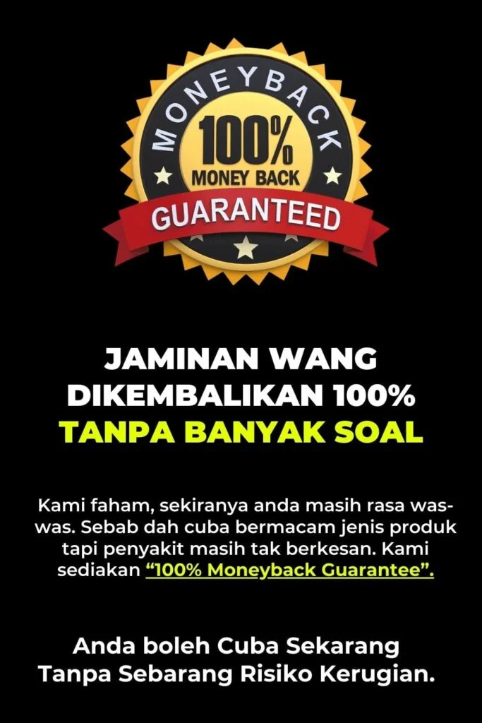 *PENAFIAN: Keberkesanan produk ini bergantung kepada kesesuaian individu. Setiap hasil dari penggunaan adalah berbeza bagi setiap individu. Produk ini akan memberi kesan terbaik sekiranya pengguna mengamalkan dengan cara betul berdasarkan banyak testimoni yang diperolehi. Kita berikhtiar, tuhan yang menyembuhkan.